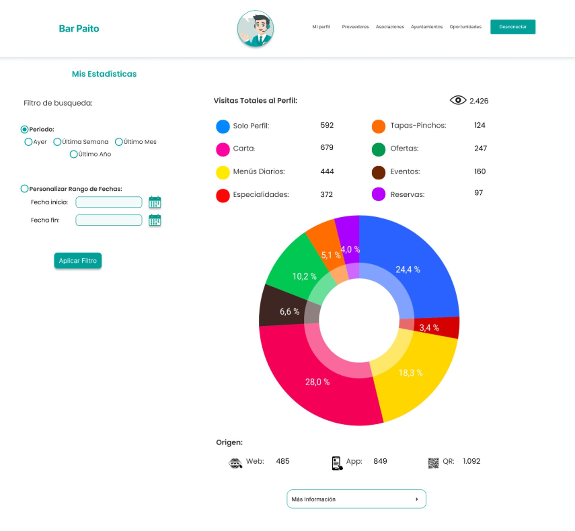 Nuestra plataforma con tecnología de Business Intelligence permite a las empresas tomar decisiones informadas y estratégicas basadas en datos reales y actualizados al instante de sus productos, cartas, catálogos, perfiles...